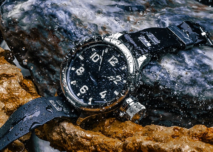 The impressive size of the 60 mm stainless steel monoblock case, once worn directly over a wetsuit, the nigrosine-coated dial, and the safe luminescent material on the hands, markers, and numerals - these legendary diver's watches are back in service