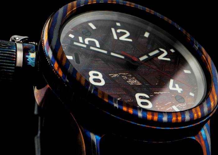 And even the meteorite in this watch has undergone additional heat treatment, changing its color from classic silver to rich brown with purple flashes. Exclusive. Luxurious. And very original