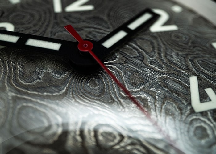 But as soon as you slightly turn your wrist, the light hitting the dial makes it "come alive," fully revealing the complexity of its texture, allowing you to examine in detail the unique metallic pattern. And then you will understand why the ancient secret of making Damascus steel has not been lost over the millennia