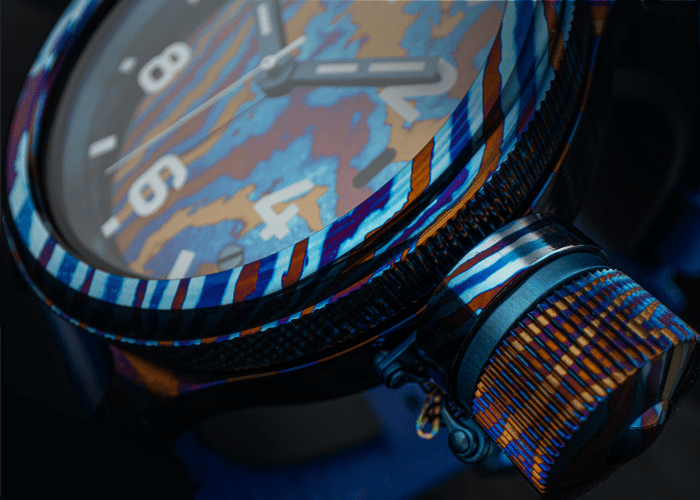 The strength of titanium and the refined beauty of Damascus steel - Ural craftsmen have achieved the incredible. Not only did they bring to life a true masterpiece called titanium Damascus, but they also crafted watches from it, admired for their multicolored sheen and unique patterns, which are never the same on any piece, just like the lines on a fingerprint
