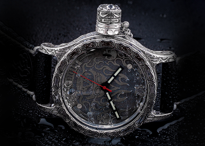 The brutal case and dial of the watch are decorated with spectacular engraving, reflecting the life credo of the king of the road and emphasizing his audacity and passion for the unknown. Complete with an embossed craft strap, this powerful duo looks like a single whole. And is a worthy completion of the image of a true biker